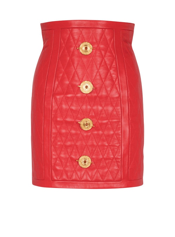 Jupe en cuir d'agneau surpiqué à motif Diamond